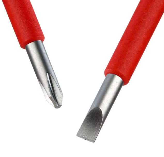 Fiecare șurubelniță este realizată din oțel crom-vanadiu de înaltă calitate, tratat termic pentru durabilitate și rezistență la uzură. Vârfurile sunt prelucrate cu precizie și magnetizate, facilitând fixarea șuruburilor și reducând riscul de alunecare. Izolația dublă asigură protecție eficientă la tensiuni de până la 1000 V AC, conform standardelor VDE, oferindu-ți siguranță sporită în timpul intervențiilor pe instalații electrice.