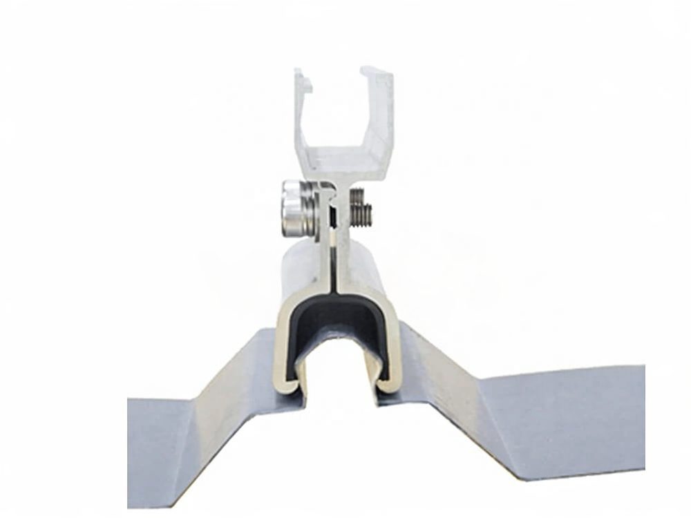 Spre deosebire de sistemele clasice care necesită găurirea tablei, acest sistem utilizează cleme de prindere mecanică ce se fixează direct pe profilul acoperișului, asigurând stabilitate structurală fără a compromite etanșeitatea. Astfel, acoperișul rămâne intact, iar garanția acestuia nu este afectată.