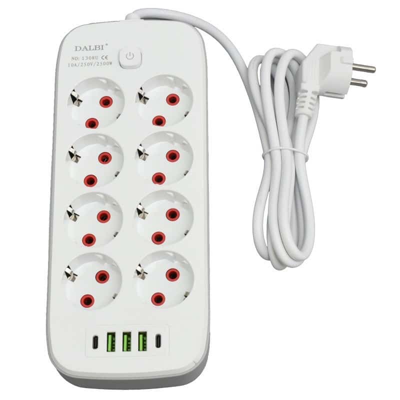 Cele 8 prize permit conectarea echipamentelor electrice uzuale – laptopuri, monitoare, imprimante, electrocasnice mici – în timp ce cele 3 porturi USB de 2,1A sunt perfecte pentru telefoane, căști wireless sau accesorii. În plus, cele 2 porturi USB PD (Power Delivery) asigură încărcare rapidă pentru smartphone-uri și tablete compatibile, reducând semnificativ timpul de alimentare.